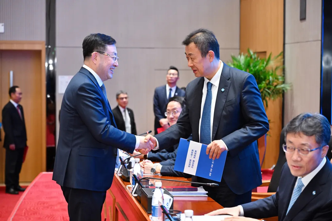 14家產業子集團、直屬二級公司主要負責人現場遞交2026年度《黨建工作目標責任書》《經營業績責任書》和《安全環保質量工作目標責任書》。